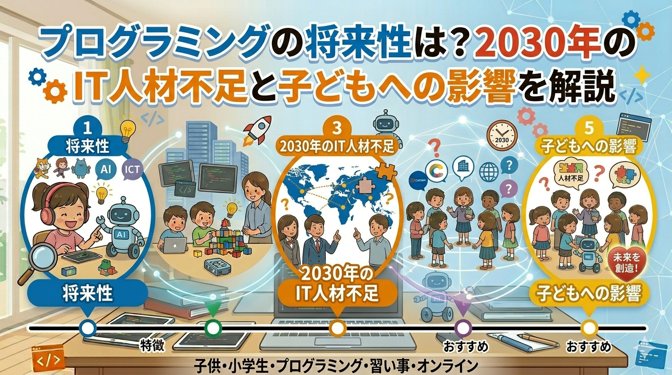 そんな不安を抱いている親御さんも多いかもしれません。でも結論から言うと、プログラミングの将来性は現在も非常に高く、2030年以降もむしろ需要は拡大すると予測されています。